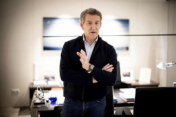Lo que más llama la atención al entrar en el despacho de Alberto Núñez Feijóo, en la séptima planta de Génova, 13, es una foto de Rafa Nadal con una dedicatoria muy afectuosa. También hay imágenes del líder del PP con Felipe VI o con Manuel Fraga, y muchos motivos gallegos -sobre todo, cerámicas de Sargadelos- y un dibujo de su hijo Alberto, de ocho años. Pero la joya de la corona -por algo ocupa el espacio central que hay tras su mesa de trabajo- es un bombín que le regaló Joaquín Sabina a través de Borja Sémper, del que es amigo el cantautor ubetense, y que se ha recuperado con éxito del cáncer que lo apartó de la política en julio de 2025. Tras analizar el resultado de las elecciones y el futuro del centroderecha en España, Feijóo anuncia en su entrevista con EL MUNDO que se volcará aún más en las medidas migratorias con una nueva proposición de ley que impondrá más requisitos para acceder a la nacionalidad española. Y defiende a capa y espada tanto sus propuestas inmobiliarias como a su equipo de Génova, que no tiene intención de renovar de cara al último año de legislatura.
